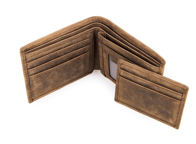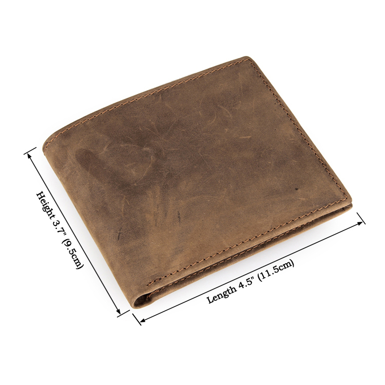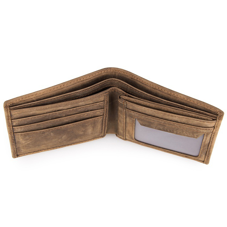 Chất liệu 100% da bò nubuck màu nâu đất rất bụi bặm cá tính. Ví khổ ngang truyền thống, đựng vừa CMND và nhiều ngăn đựng thẻ tín dụng, trong ví có ngăn đựng thẻ có thể tách rời. Thích hợp với Nam giới sử dụng.