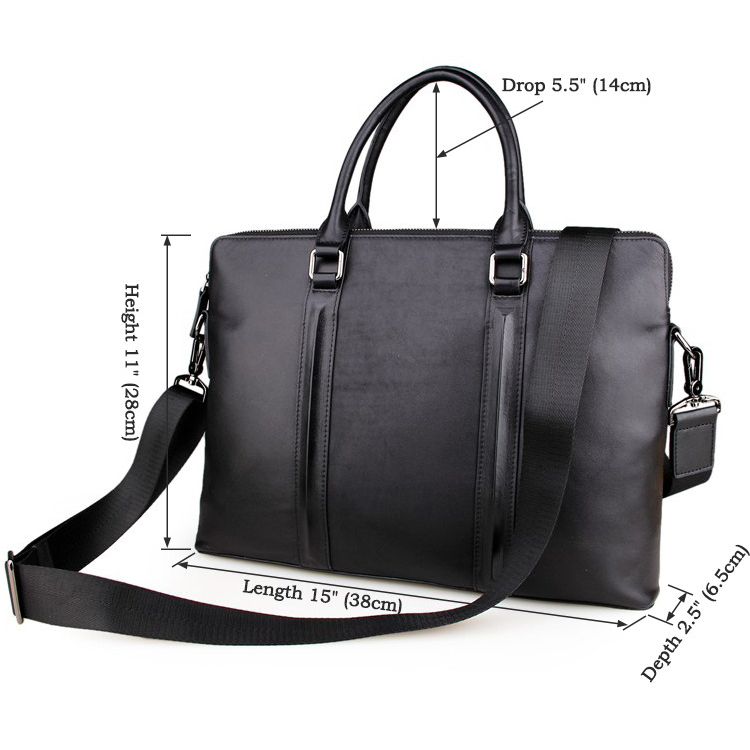Cặp da bò màu đen. Với thiết kế hiện đại, gọn gàng giúp cho người sử dụng dễ dàng kết hợp với những bộ vest công sở cũng như khi sử dụng đi gặp đối tác hay đi họp. Móc và khóa kéo làm bằng nhôm mạ bạc, có độ bền cao và dễ dàng sử dụng. Túi có khóa kéo giúp bảo vệ đồ dùng bên trong. Trong túi có 2 ngăn chính rộng có thể đựng vừa lap top 11-13" và các ngăn túi phụ ( thích hợp đựng ví, điện thoại di động, máy tính bảng, sách, tài liệu... ).