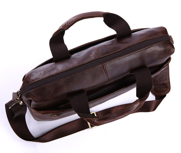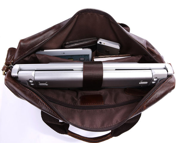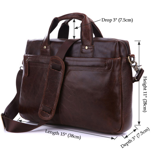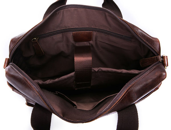 Kích thước vừa phải, đựng vừa laptop 13", sở hữu chất da bò thật, nâu sẫm, dày nhưng mềm, độ bền rất cao. Bên trong cặp gồm 2 ngăn lớn và 1 số ngăn nhỏ. Phù hợp với những người đi làm công sở, vừa có thể xách tay tạo phong cách lịch lãm hoặc đeo chéo năng động.