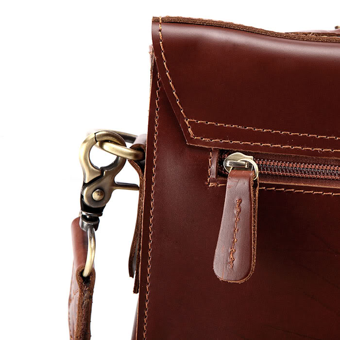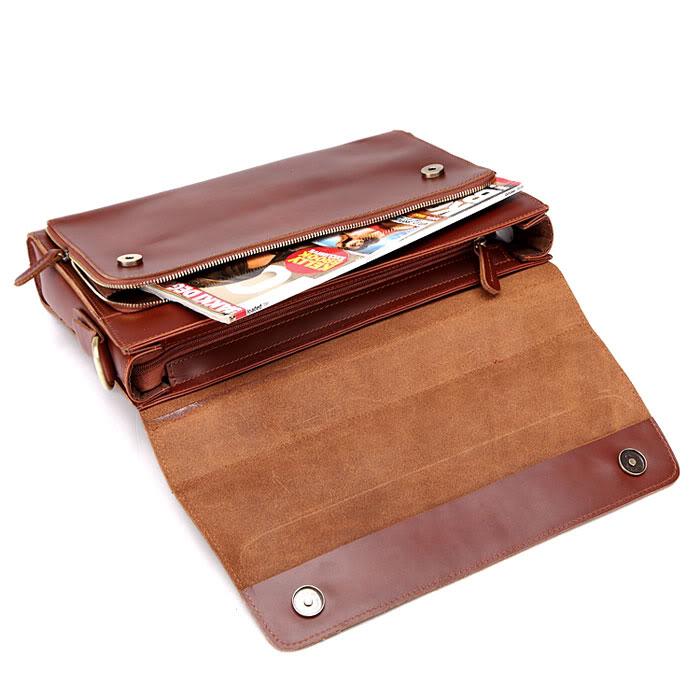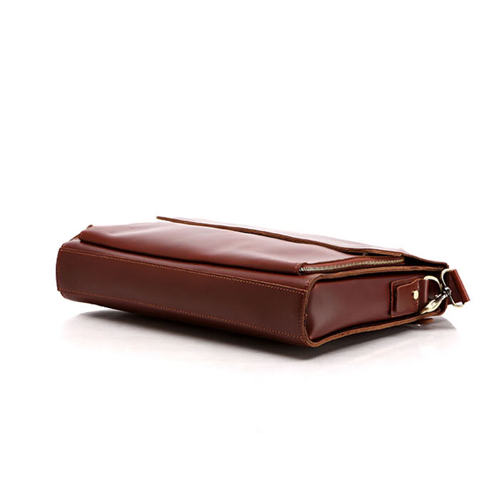 Chất da dày dặn cực bền, màu đỏ nâu bóng rất đẹp và lịch lãm rất phù hợp với trang phục công sở khi đi họp, đi làm. Ngoài tay cầm, túi còn kèm dây đeo dài giúp chúng ta thay đổi phong cách hàng ngày. Bên trong túi có 1 ngăn có khóa kéo, 1 ngăn đựng laptop và 2 ngăn nhỏ đựng ví, điện thoại.