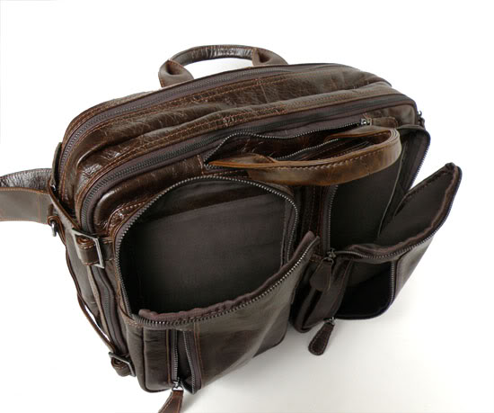 Là sự kết hợp độc đáo giữa cặp công sở, túi du lịch và ba lô. Nước da sẫm màu, mềm và hơi nhàu tạo dáng vẻ vintage độc đáo. Cặp đựng vừa laptop 13" và có nhiều ngăn tiện dụng đựng đồ cá nhân khi đi công tác hoặc du lịch. Có kèm dây đeo dài.