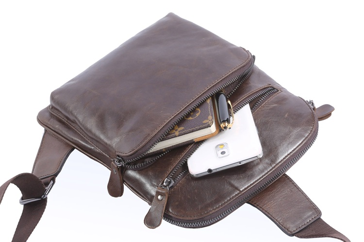 Túi da được thiết kế độc đáo để đeo chéo sau lưng rất tiện dụng và chắc chắn .Có 1 ngăn rộng đựng vừa Ipad và 2 ngăn nhỏ hơn phía trước để các vật dụng cần thiết: điện thoại, thuốc lá, chìa khóa,... Khóa kéo bằng nhôm mạ màu thuốc súng.