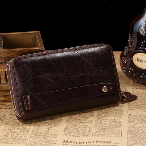Ví Clutch cầm tay, màu nâu sẫm. Chất liệu da bò, phù hợp với cả nam và nữ. 2 ngăn chính rộng rãi, để vừa tiền, chứng minh nhân dân, bằng lái xe và thẻ. Ngoài ra ví có kèm theo dây cầm có thể tháo rời.