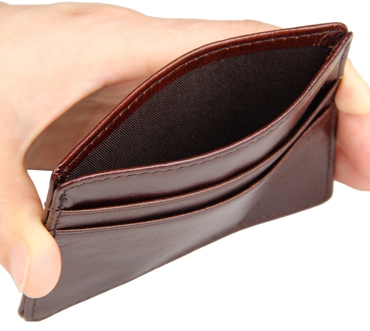 Chất liệu 100% da bò mềm, bề mặt bóng đẹp, màu nâu cafe. Ví có khổ ngang có nhiều ngăn cho thẻ tín dụng, card visit, voucher, giftcard... Mặt ngoài không dập logo nhãn mác hay họa tiết. Có thể yêu cầu khắc lazer tên hoặc họa tiết bạn muốn để tạo cá tính và sự khác biệt.
